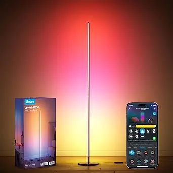 Govee RGBIC Floor Lamp Basic, LED Corner Lamp Works with Alexa, 1000 Lumen Smart Modern Floor Lamp with Music Sync and 16 Million DIY Colors, Color Changing Standing Lamp for Bedroom Living Room Black