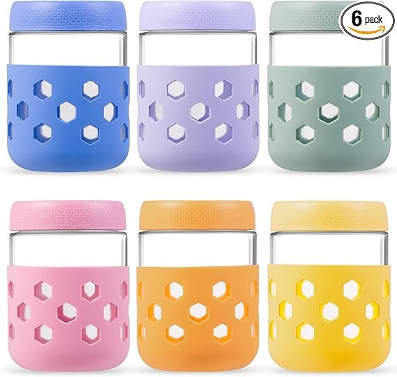 Gemice 6-Pack 16oz Glass Mason Jars with Silicone Sleeves, Airtight BPA-Free Overnight Oats Containers with Lids, Dishwasher Safe Leak-Proof Meal Prep Jars for Chia Pudding, Yogurt, Snacks