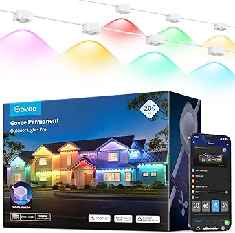 Govee Permanent Outdoor Lights Pro, 200ft with 120 RGBIC LED Lights for Daily and Accent Lighting, 75 Scene Modes for Outdoor Decor, IP67 Waterproof, Works with Alexa, Google Assistant, Matter, White