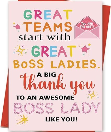 Pink Boss Day Card Gifts for Women | Best Gifts for Boss Female | Thank You Card for Boss Lady