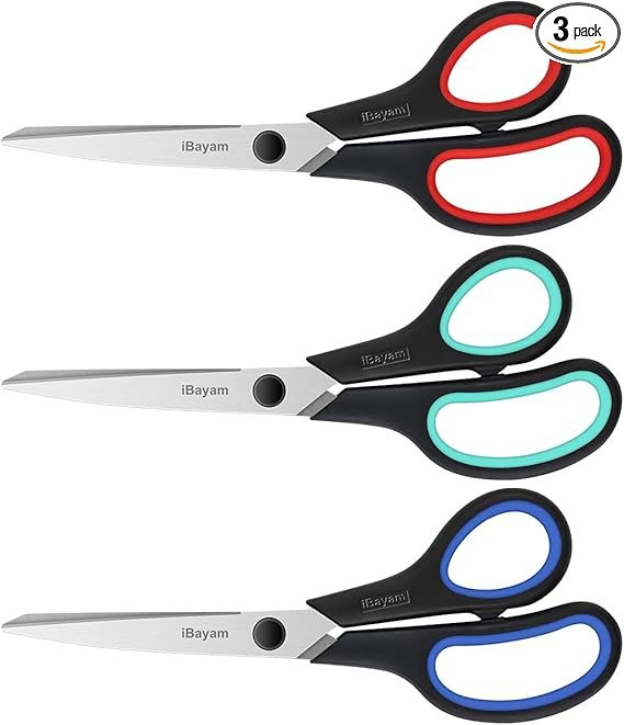 3-Pack 8″ Heavy Duty Scissors with Ultra Sharp Blades and Comfort Grip Handles – For Office, Home, School, Sewing, and Crafts