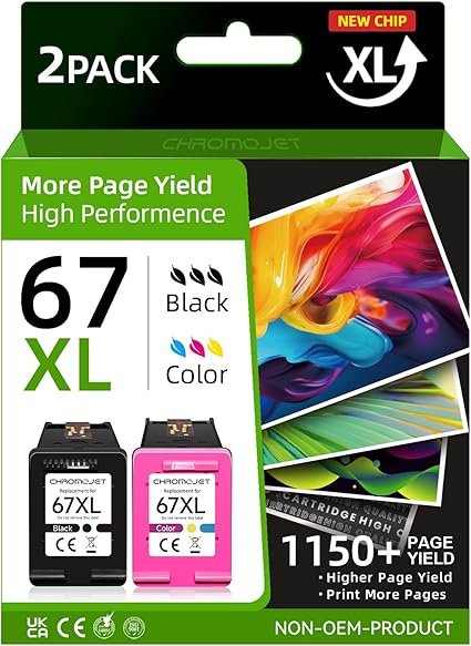 67XL Ink Cartridges Black/Color Combo Pack Compatible for HP 67XL Compatible for HP Ink 67 XL Fit for DeskJet 2855e 2800e 4155e 2755e 2700 2700e 4100 4255e Envy 6055e 6455e 6000 6400 Printer