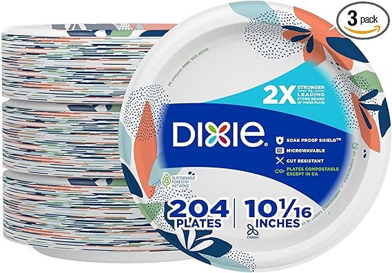 Dixie Large Paper Plates, 10 Inch, 204 Count, 2X Stronger*, Microwave-Safe, Soak-Proof, Cut Resistant, Disposable Plates For Everyday Breakfast, Lunch, & Dinner Meals
