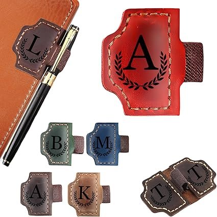 Custom Bygone Mark Bookmark with Pen Holder Erebloom Personalized Magnetic Leather Bookmarks with Initial Magnetic Leather Pen Holder Bookmark for Reading Women and Men Gifts for Booklovers (Red, A)
